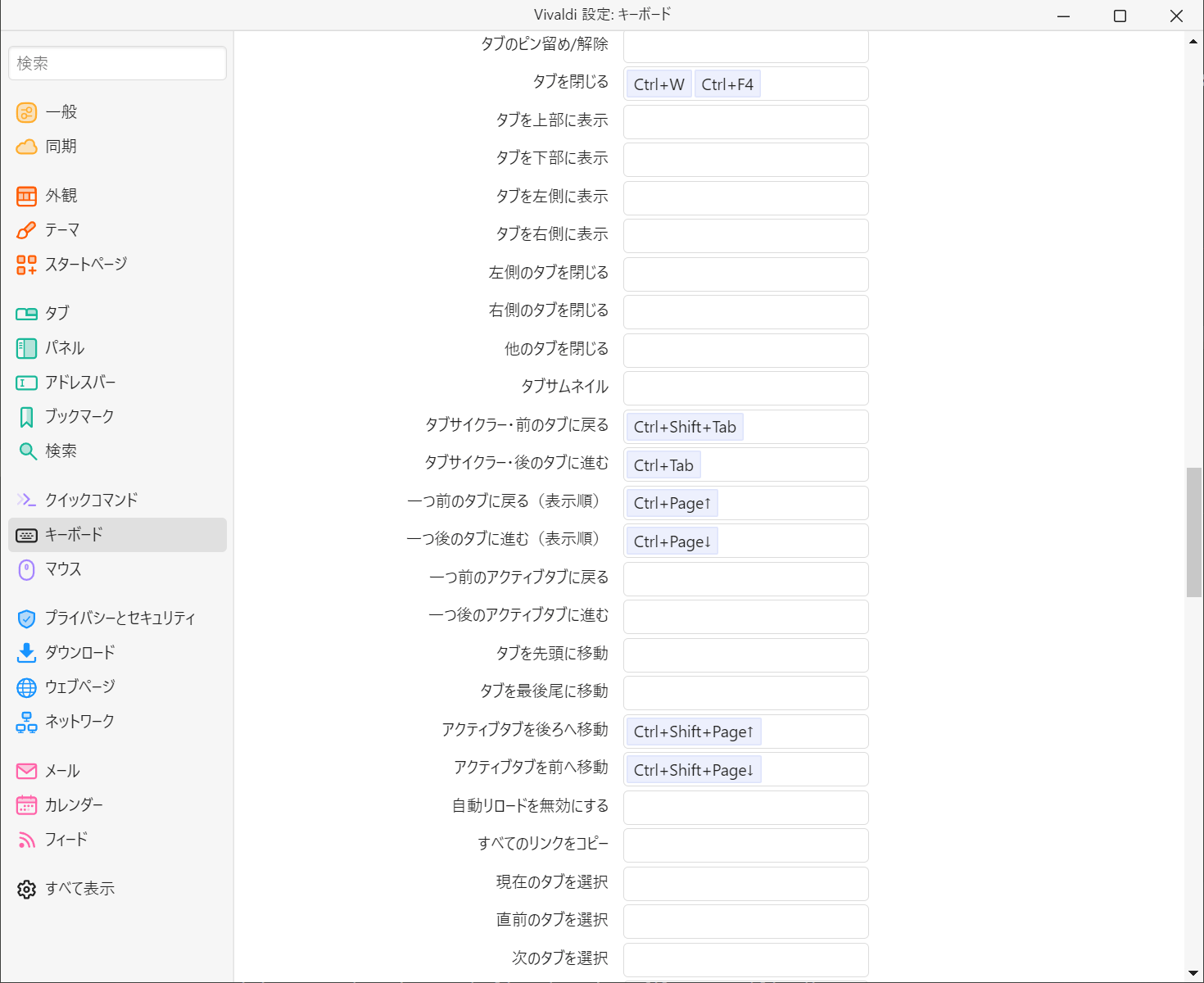 にある通り、キーボード設定画面で「タブサイクラー・前のタブに戻る」と「一つ前のタブに戻る(表示順)」が別のショートカットになっています。