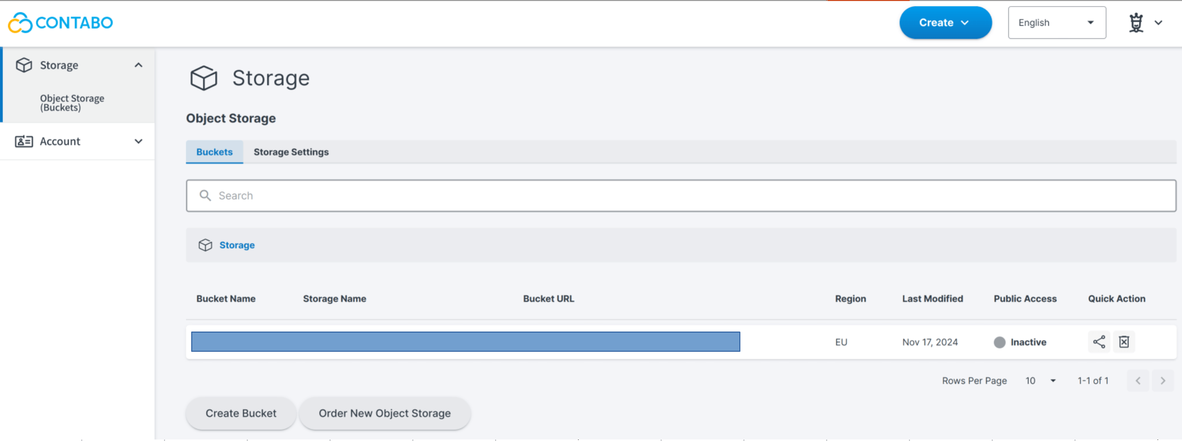 - ContaboのObject Storageは最低250GBからです。S3と違い、完全な従量課金でなく、250GBよりも利用料が少なくても250GB分の料金は最低でも要求されます