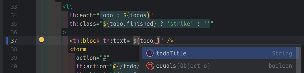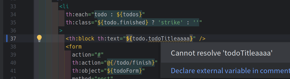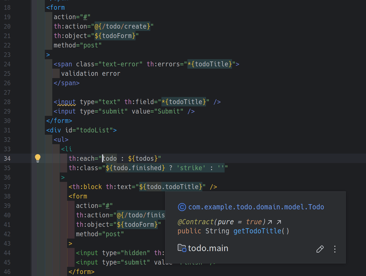 普通のエディターではThymeleafはただのHTMLでしかなく、th:textやそれに設定されている変数名もただの文字列でしかないため、この機能もなかなか便利です。