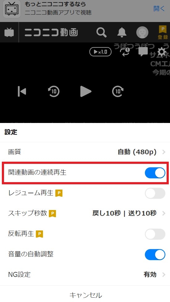【スマホブラウザ】ニコニコ動画で連続再生を無効にする方法